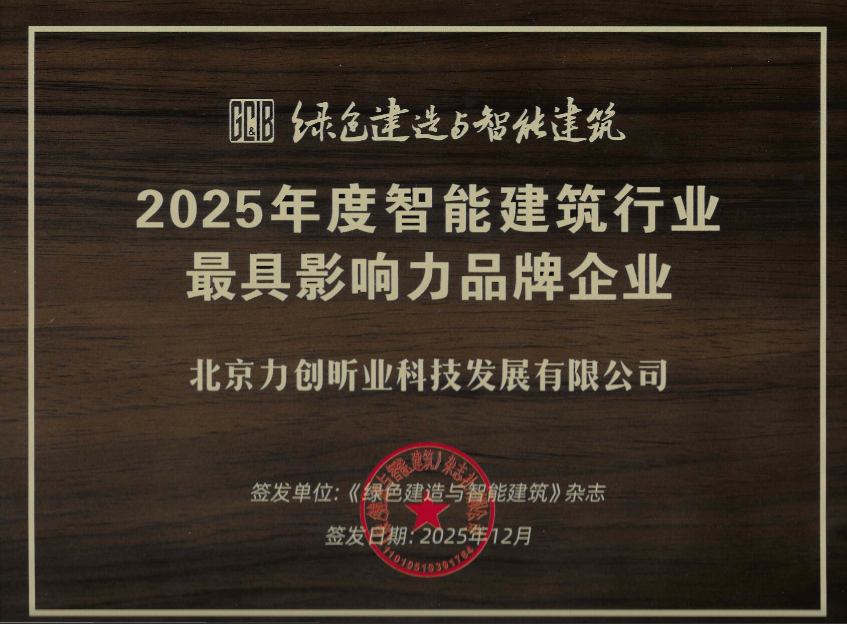 2026/01/13 一 匠心見(jiàn)證實(shí)力:力創(chuàng)昕業(yè)科技獲評(píng)智能建筑行業(yè)最具影響力品牌