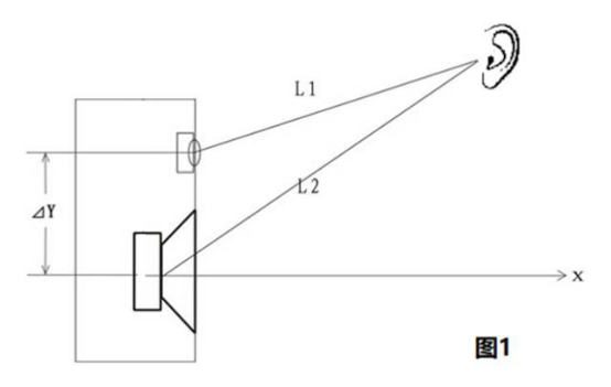 單個揚聲器在聲音重放時,無法滿足人耳對 20 ~ 20kHz 的頻響要求,因此,音箱大多采用高、低音揚聲器來分別重放各自的頻段,在空間合成。有的音箱還采用高、中、低三揚聲器的結(jié)構(gòu),目的都是為了真實呈現(xiàn)自然界的聲音。但是,這種音箱的揚聲器需按一定的方式排列,發(fā)聲點分散成兩個或三個,原來是點聲源的聲學(xué)結(jié)構(gòu)被多個揚聲器的分離排列破壞了(圖1⊿y),在聽覺效果上感覺頻率分離.同時,由于兩個揚聲器的間距影響到聲音到達人耳的時間不同(圖1中L1≠L2),形成相位差, 造成相位失真,近聲場時更加明顯。